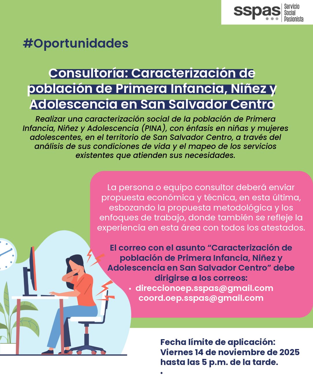 Realizar una caracterización social de la población de Primera Infancia, Niñez y Adolescencia (PINA), con énfasis en niñas y mujeres adolescentes, en el territorio de San Salvador Centro, a través del análisis de sus condiciones de vida y el mapeo de los servicios existentes que atienden sus necesidades.